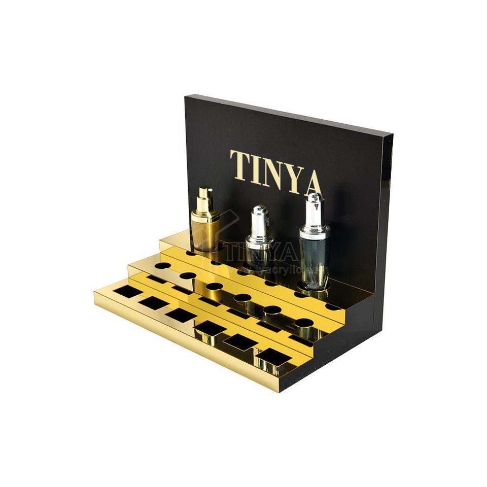 Support de soin de la peau de bureau en acrylique au design personnalisé Tinya, support de crème pour les yeux de luxe, noir et or, marque haut de gamme, présentoir de magasin de beauté