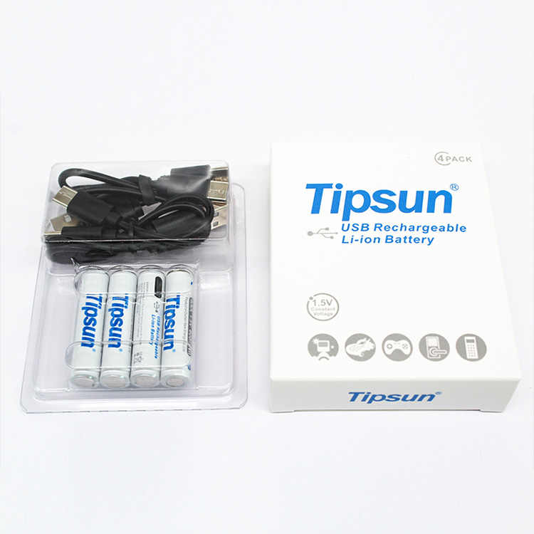 Batterie Li-ion rechargeable USB Tipsun Aa Aaa 1,5v 600mwh avec port de charge de type C