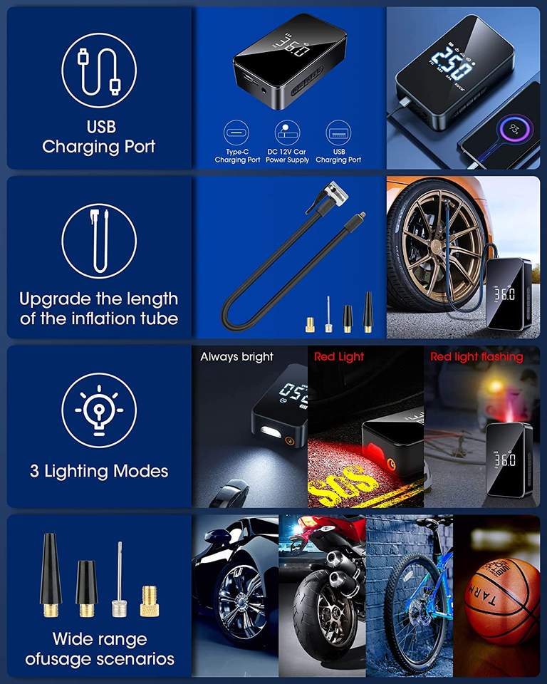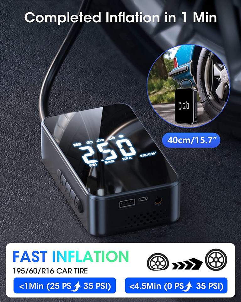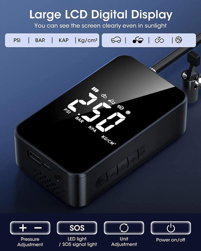 Gonfleur de pneus Compresseur d'air portable sans fil 12 volts Gonfleur de pompe à air entièrement à écran 810 Gonfleur de pneus