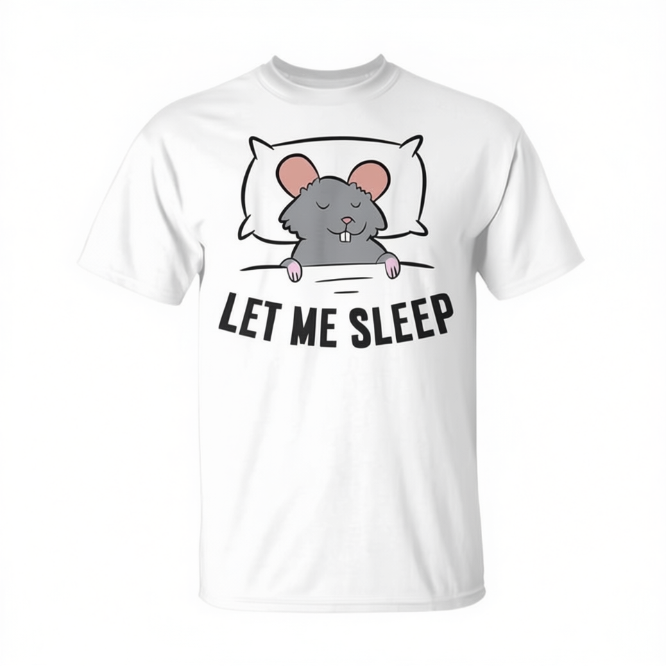 T-shirt « Tired Rat Let Me Sleep » gris avec motif de souris, t-shirt amusant pour dormir