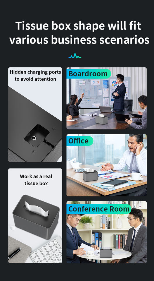 Boîte anti-enregistrement vocal en forme de boîte à mouchoirs en ABS, bloqueur d'enregistreur avec 42 têtes ultrasoniques, alimentation de secours intégrée, Wi-Fi