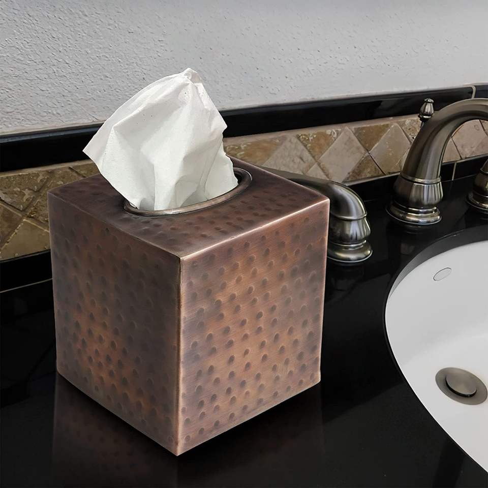 Boîte à mouchoirs carré support de couverture et distributeur accessoires de commode en métal pour bureau salle de bain décor vanité