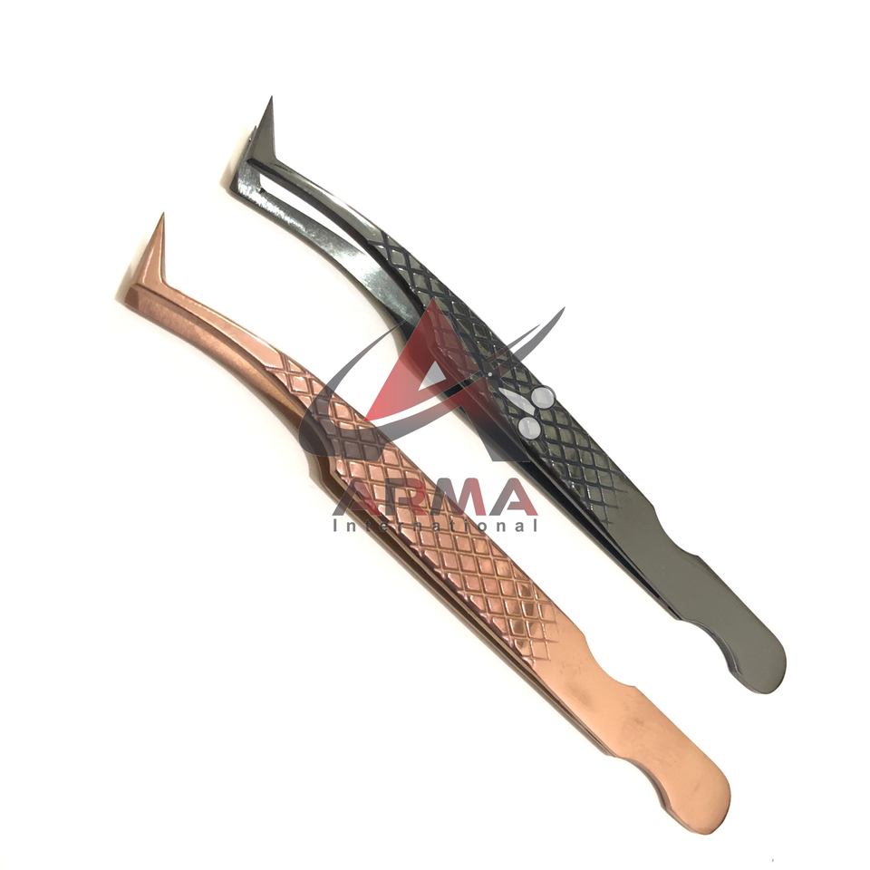 Pince à épiler d'extension de cils de type L de volume noir de titane testée à la main en acier inoxydable forte adhérence pointe pointue durable