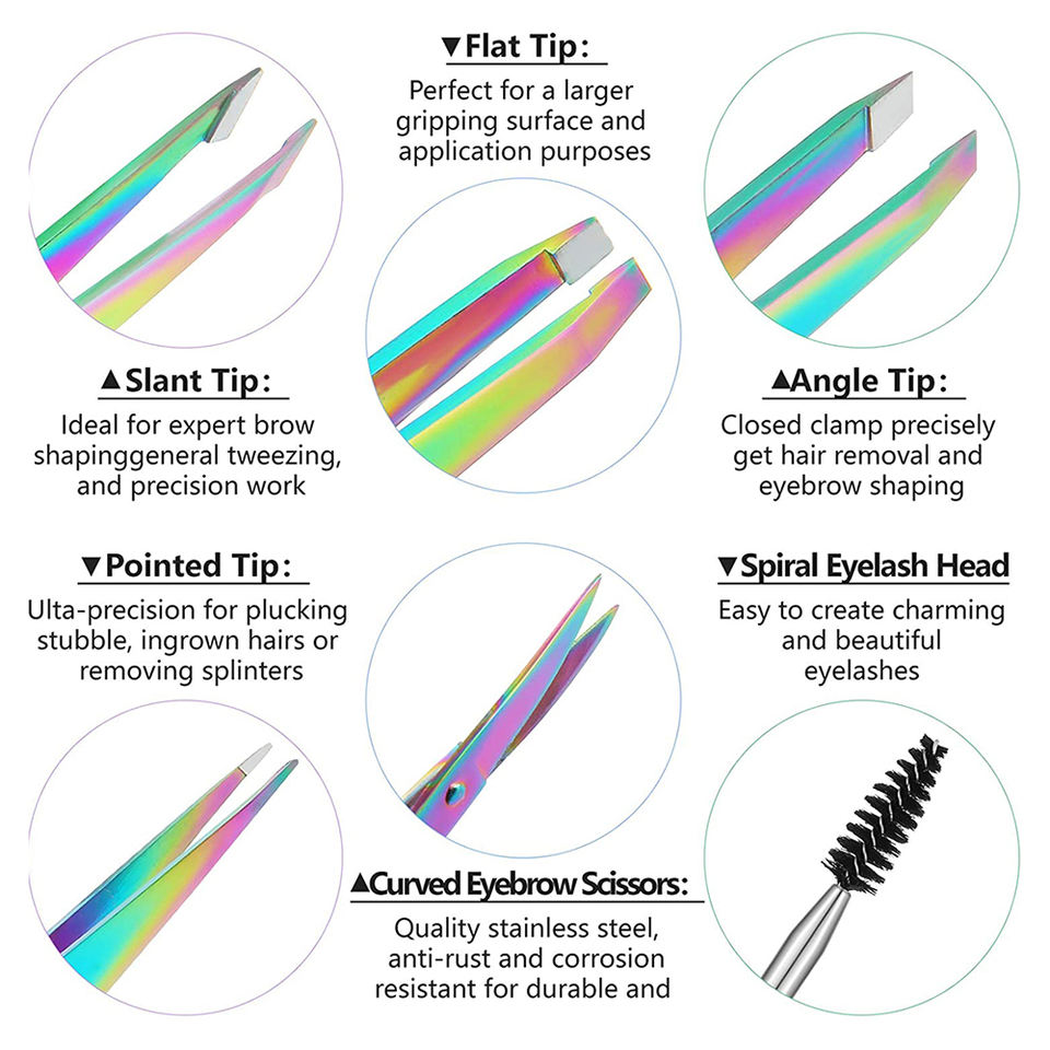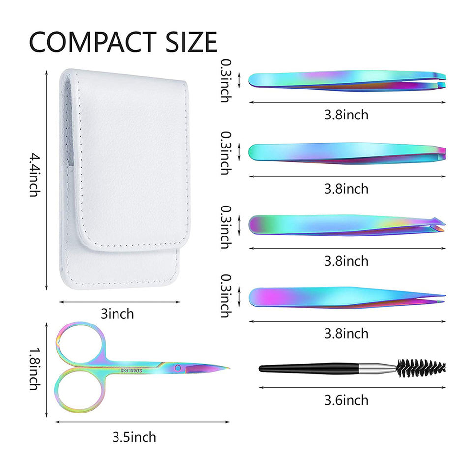 Ensemble de pinces à sourcils en titane avec revêtement coloré, en acier inoxydable, durable, 6 pièces, pointe lisse pour l'utilisation sur les sourcils
