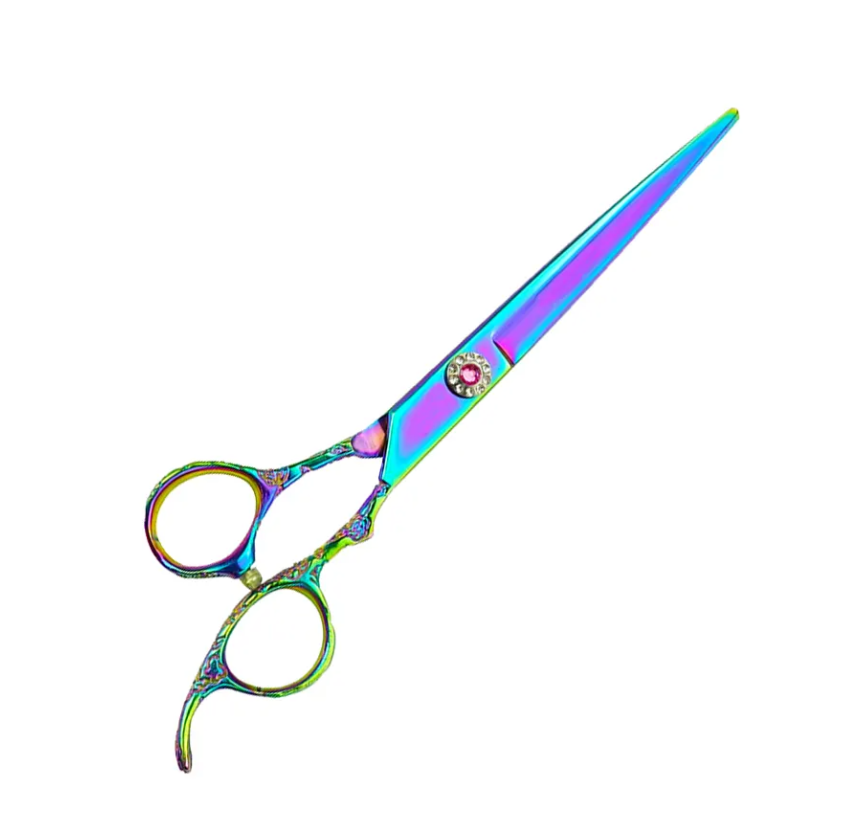 Ciseaux de coupe de cheveux en acier au titane couleur titane pour salon de beauté avec repose-doigt et étui