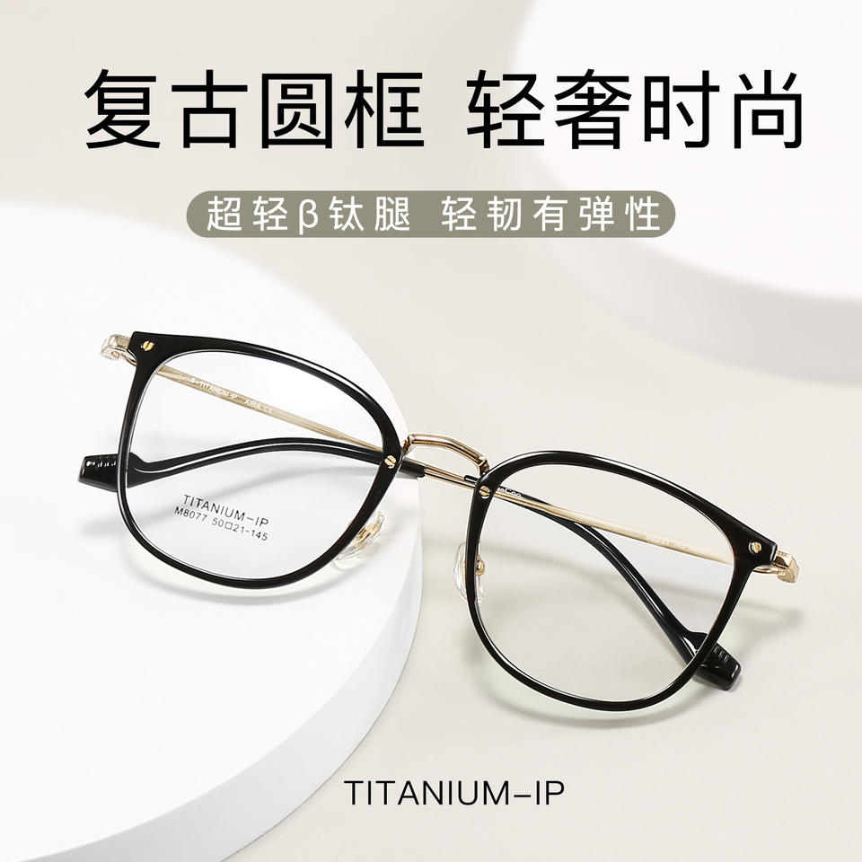 Monture de lunettes en titane, monture ronde complète M8077 50-21-145, légère, unisexe, avec verres en résine