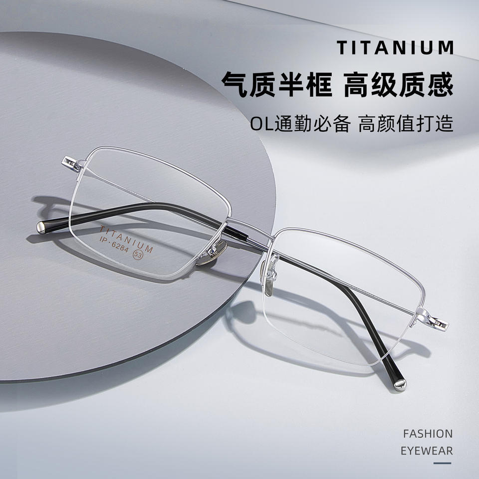 Lunettes de vue demi-cadre en titane pour hommes, rectangulaires 6284, légères, en titane pur, pour grands visages, origine Danyang