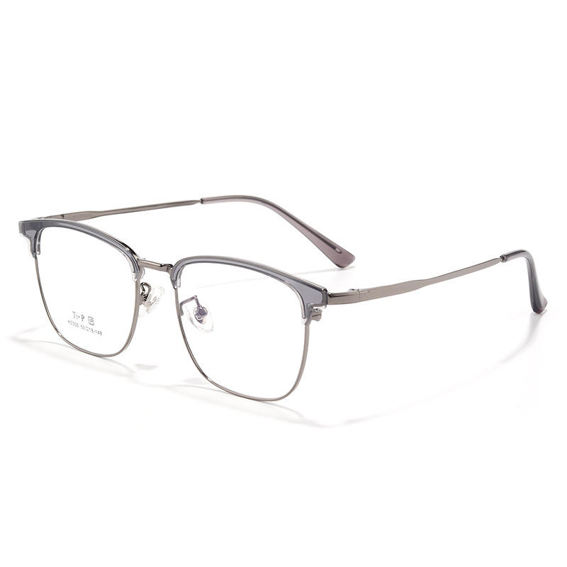 Lunettes de vue pour homme en titane demi-cerclées rectangulaires 3305 avec verres en résine antireflet, style professionnel et tendance