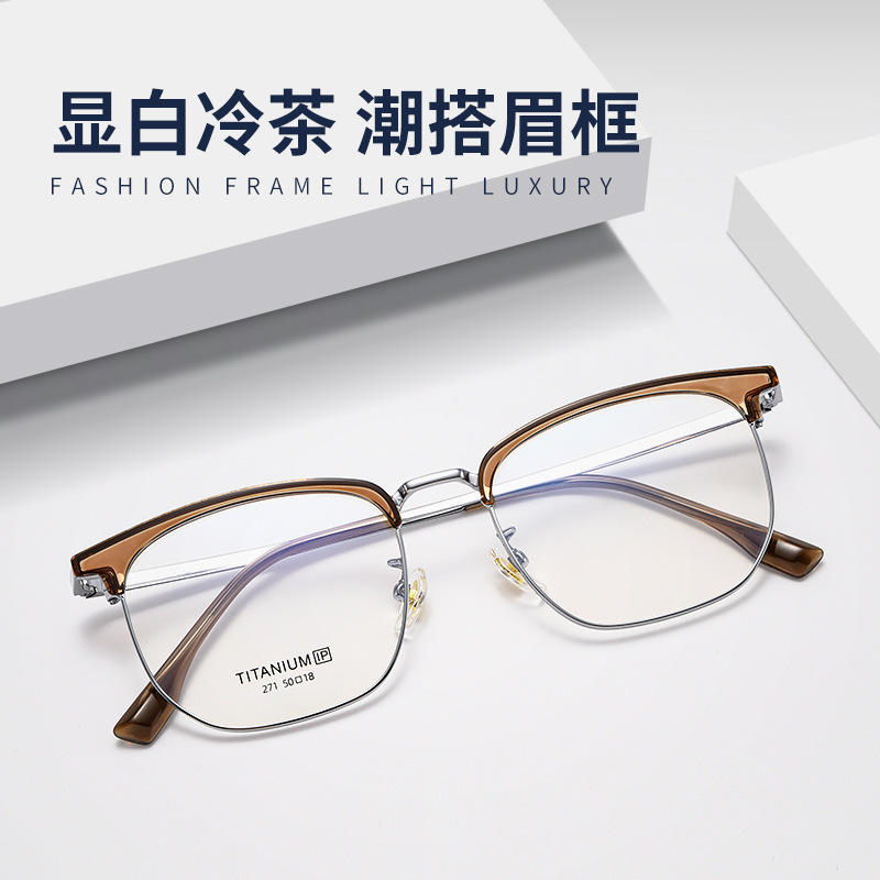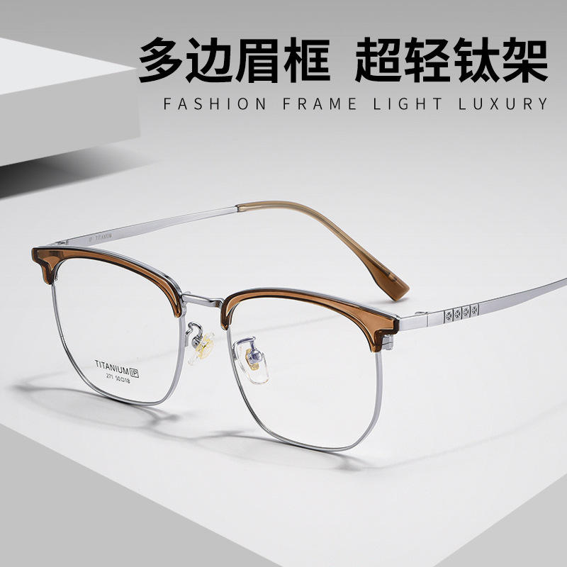 Montures de lunettes demi-cerclées en titane, forme ovale 271, unisexe, tendance mode, verres en résine, design rétro