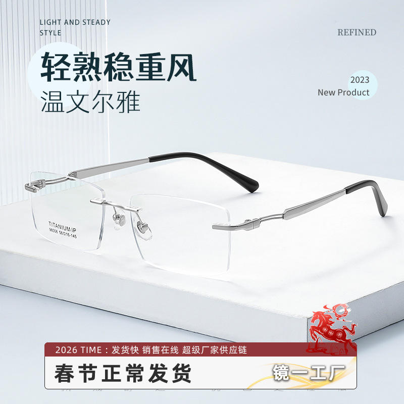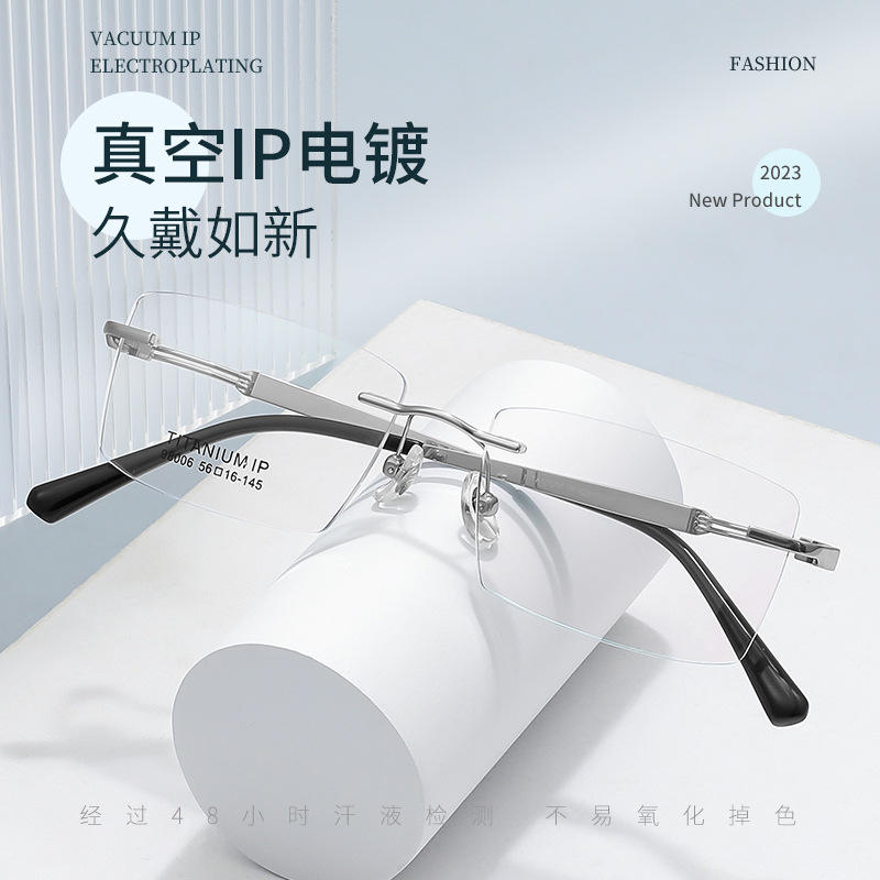 Titanium Ip 98006 Rimless Eyeglasses Frames Men Pure Titanium Lightweight Optical Glasses Danyang Manufacturer