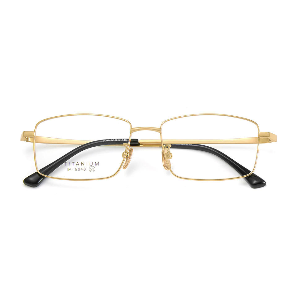 Montures de lunettes rectangulaires en titane pour hommes 9048, légères, monture complète, bordure dorée, verres en acrylique, origine Danyang