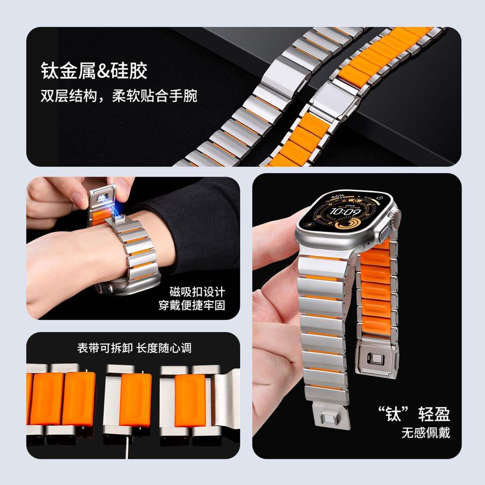 Bracelet en métal titane pour Apple Watch Ultra Band 49 mm 46 mm 45 mm, bracelet respirant pour affaires, extrémité incurvée, compatible