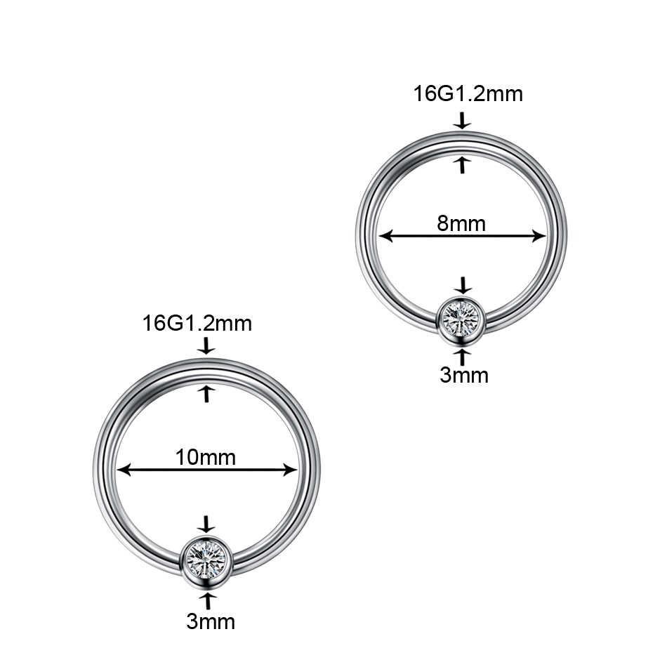 Anneau de piercing en titane avec gemme pour nez, lèvre, sourcil, Daith, Rook, oreille, septum, hélix, tragus 16G