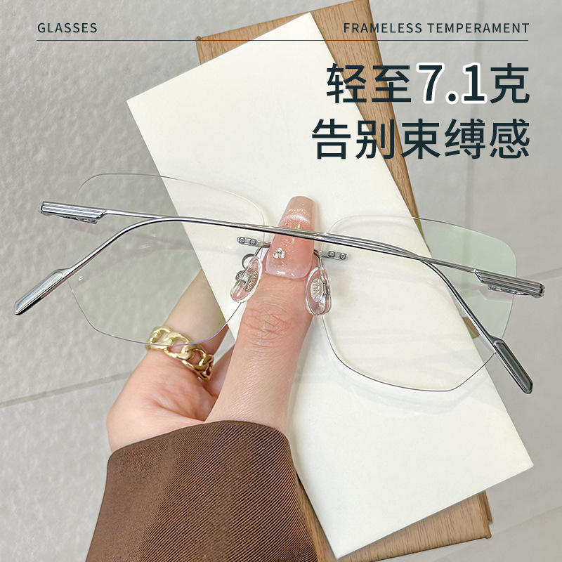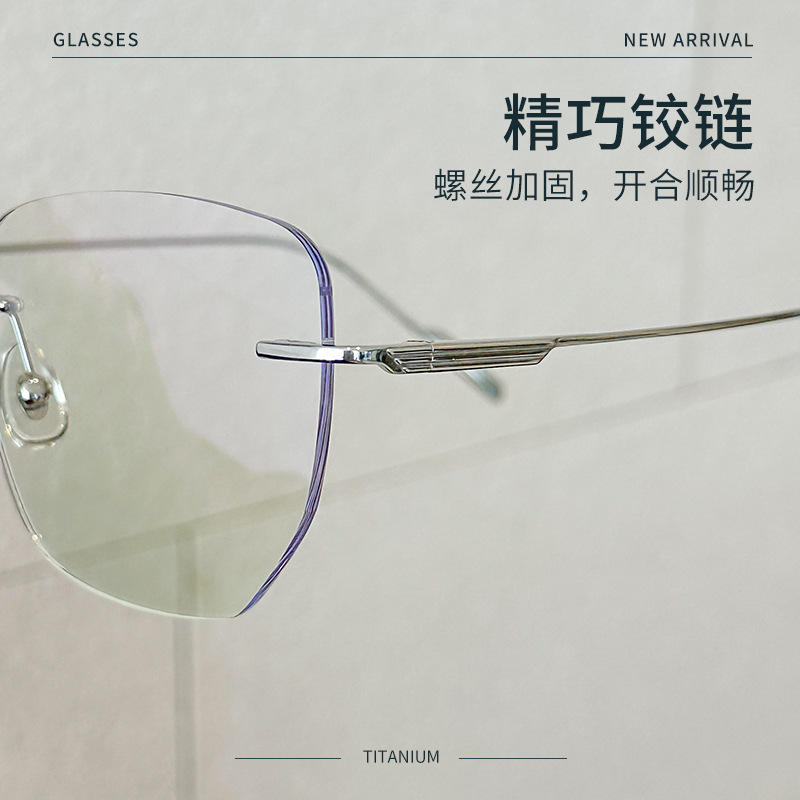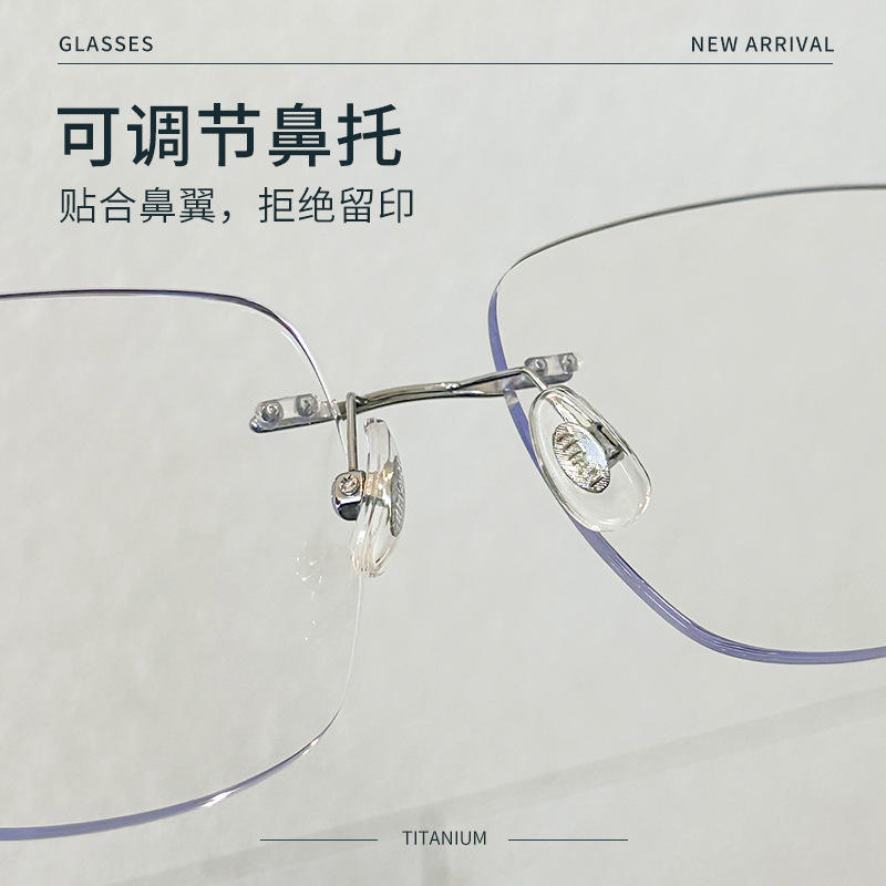 Montures de lunettes sans monture en titane, rectangulaires, unisexes, légères, avec plaquettes de nez réglables, titane pur 71205