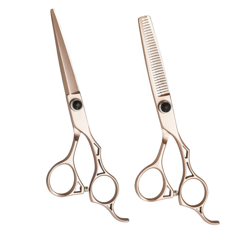 Ciseaux de coiffure couleur or rose titane, ciseaux à effiler et kit de salon de coiffure avec étui en cuir