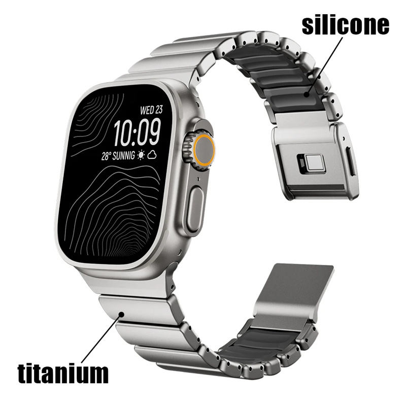 Bracelet en titane + silicone pour Apple Watch Ultra 3 49 mm 46 mm, bracelet magnétique de luxe pour séries 11 10 9 8 7 6 5 SE