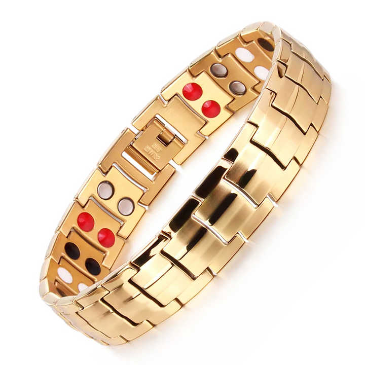 Bracelet en acier titane pour homme Bio Bracelet avec plaqué or et bracelet Elements -ion 4 en 1