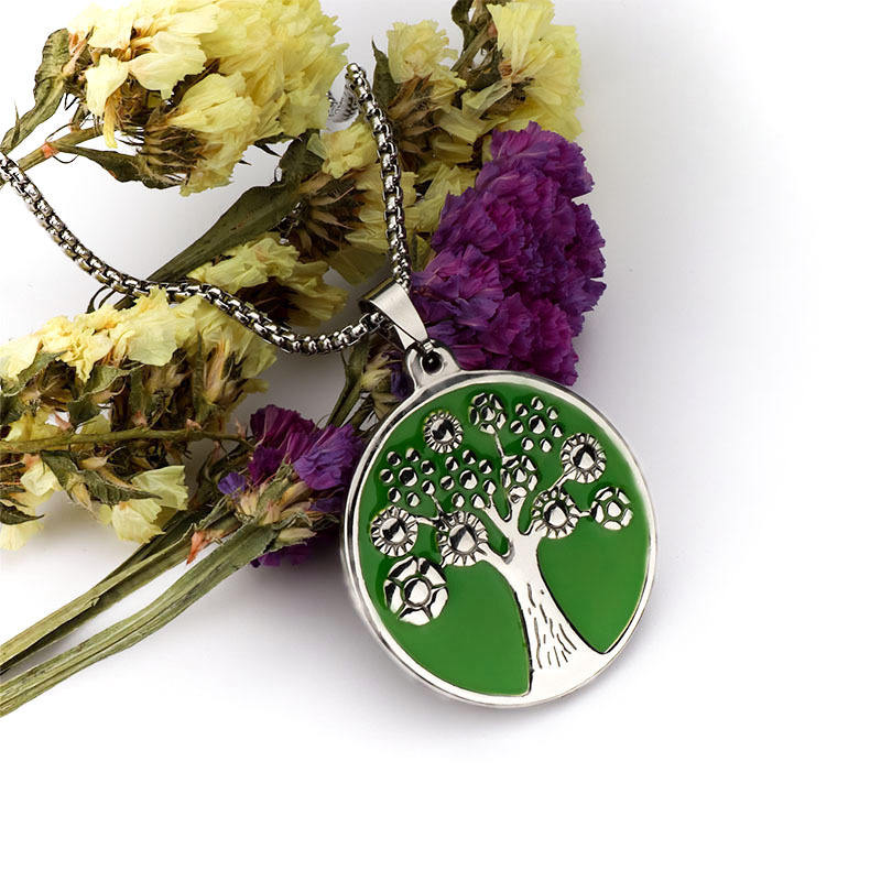 Collier pendentif ethnique simple en acier titane et acier inoxydable, arbre de vie, bijoux sculptés