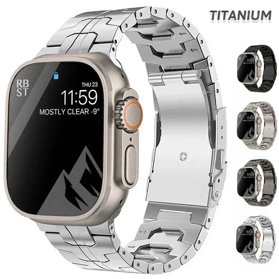 Bracelet en titane pour Apple Watch Ultra2 49mm 45 46 44mm 38mm 41mm, bracelet de luxe pour homme, style bracelet pour IWatch SE 10 9 8 7 6 5 4 3