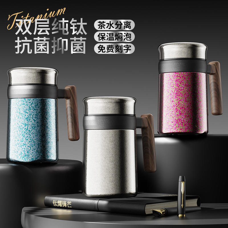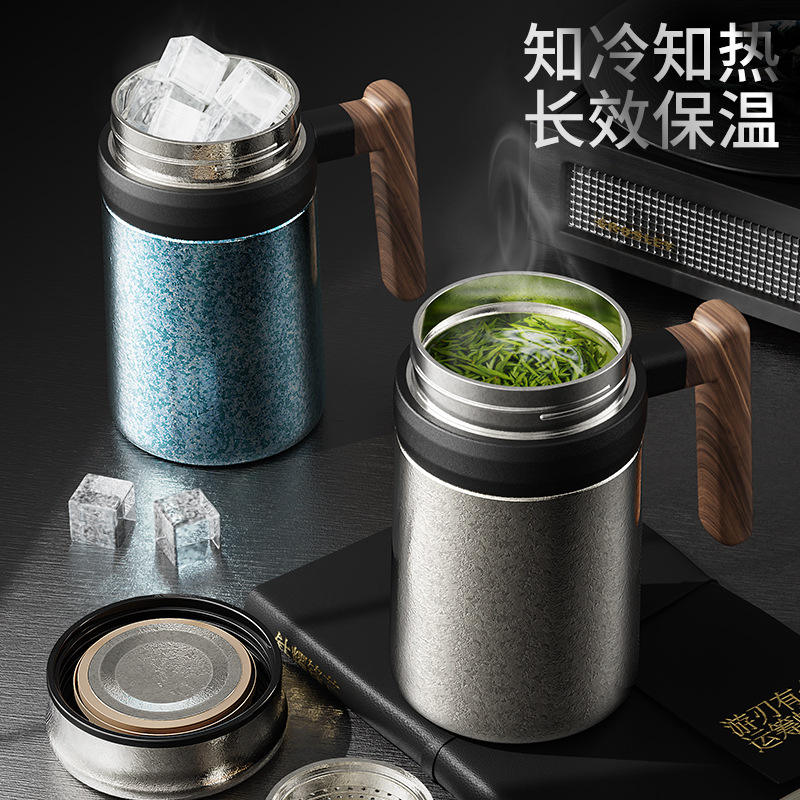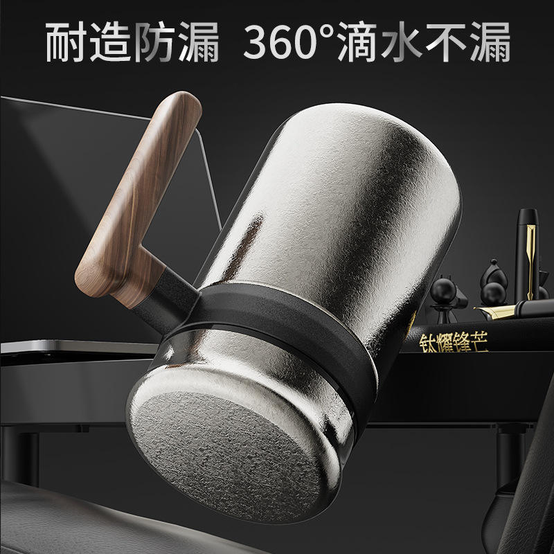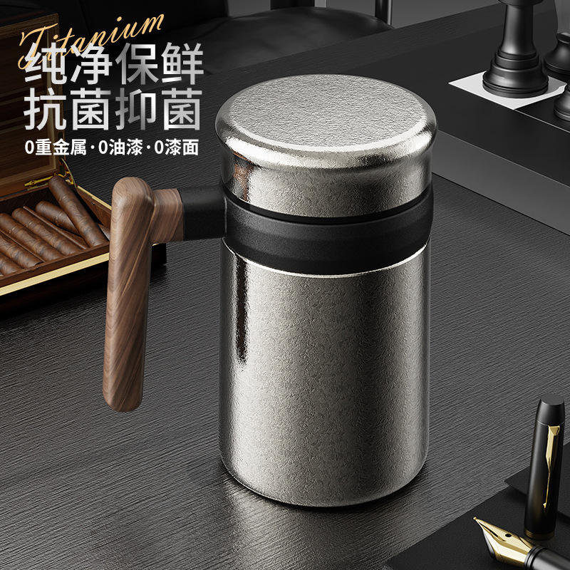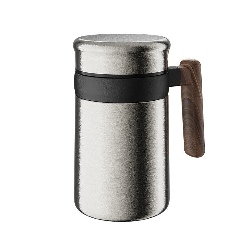 Tasse Thermos en Titane avec Poignée et Infuseur à Thé pour Bureau et Usage Professionnel, Argent Cristal