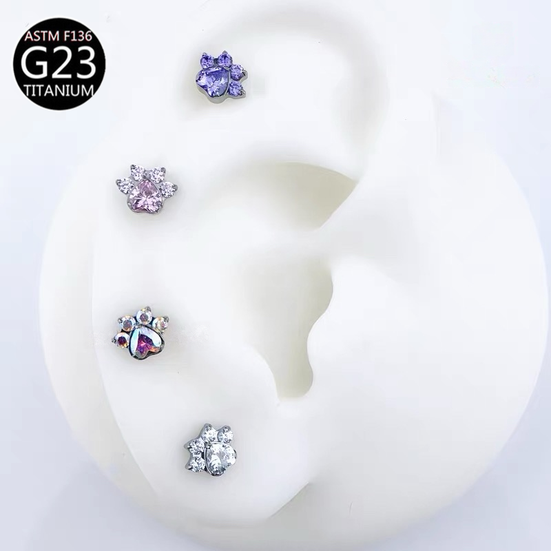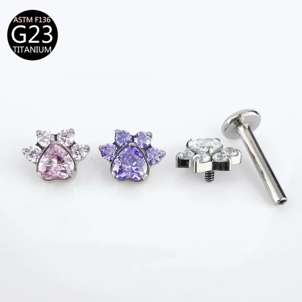 Piercing en Titane Zircon Patte de Chat, Clou d'oreille, Labret à filetage interne, Anneau de lèvre, Bijoux de piercing corporel, Cadeau pour la Saint-Valentin
