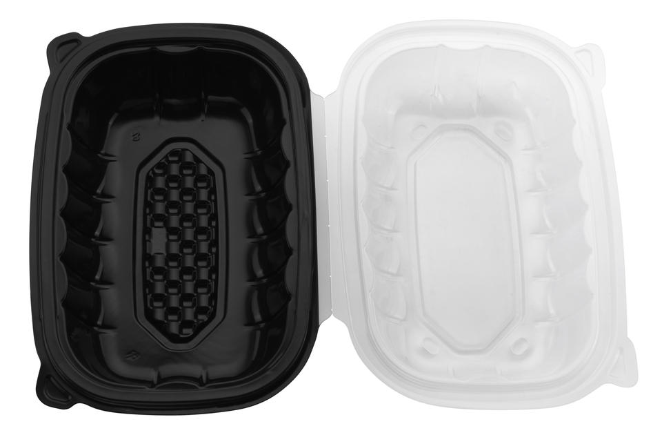 Récipients de nourriture à emporter jetables rectangulaires résistants à la chaleur en plastique à double charnière Tiya