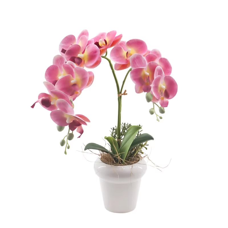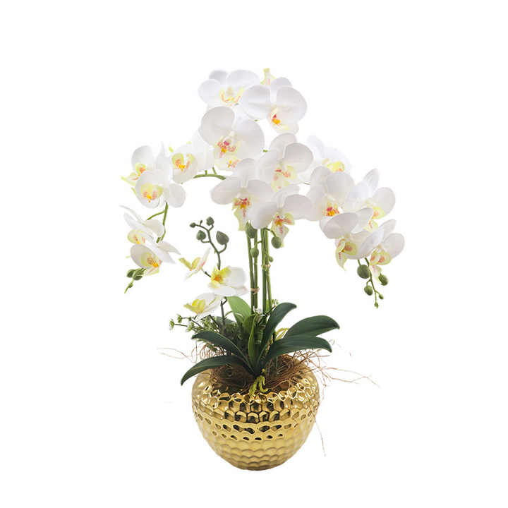 Tizen Orchidée Artificielle en Vase Orchidée Blanche Latex Real Touch Orchid Plant en Pot Décoration de la Maison Arrangement