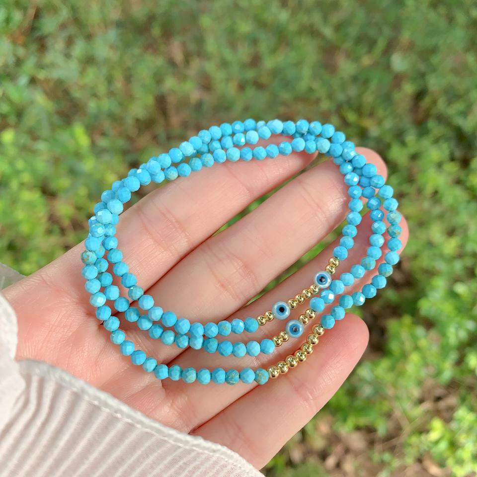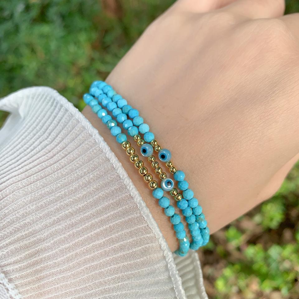 Bracelet en perles turquoise au design unique Tk-L033, bracelet œil bleu, bracelet en perles plaqué or, bijoux féminins, mode douce