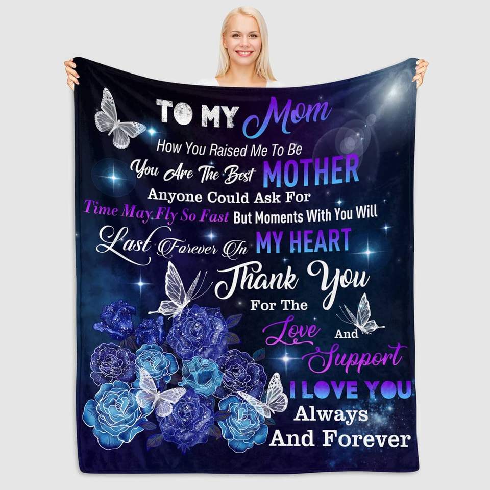 Couverture en flanelle rayée « Je t'aime pour toujours » pour ma maman, cadeau doux pour la fête des mères, Noël, usage domestique, 50x60 pouces