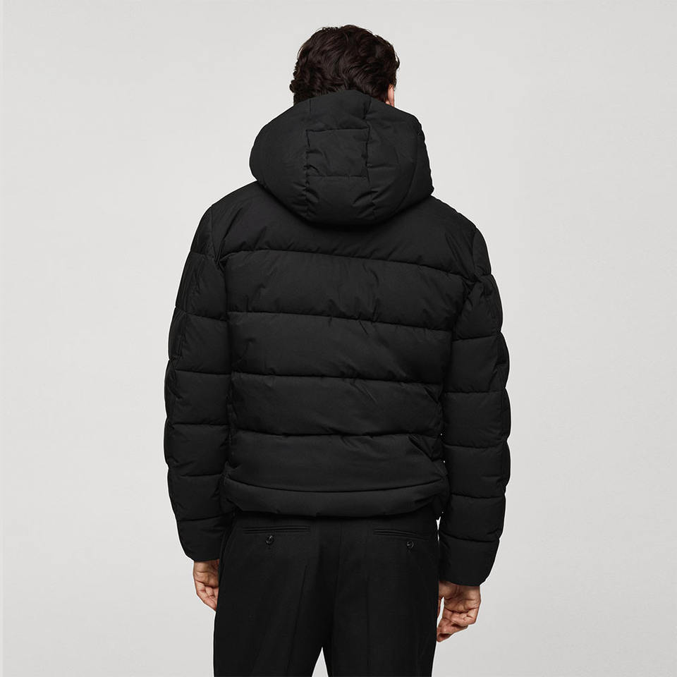 Blouson matelassé de qualité pour homme, noir, manches longues, fermeture éclair, style streetwear hiver, face enduite