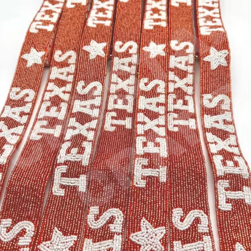 To The Bal Sangles de sac de perles de rocaille en or blanc personnalisées 'Hook Em Horns' Accessoire à la mode Sangle de sac à main perlée