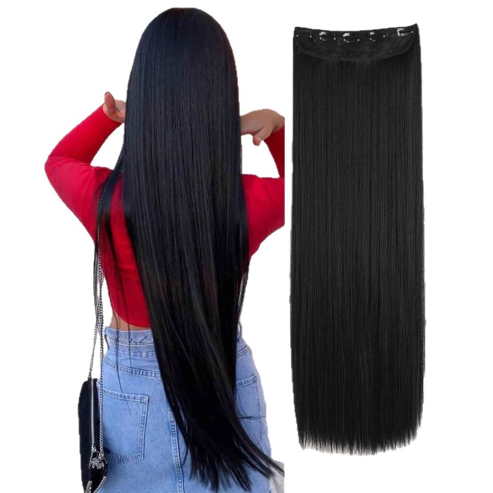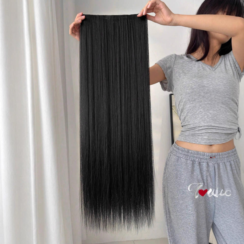 Extensions de cheveux raides Tocucc 50cm 60cm 70cm 80cm 100cm, postiche femme à cinq clips, en fibre haute température teinte