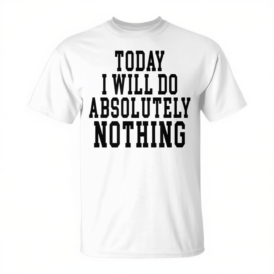 Aujourd'hui, je ne ferai absolument rien T-shirt blanc col rond unisexe taille adulte