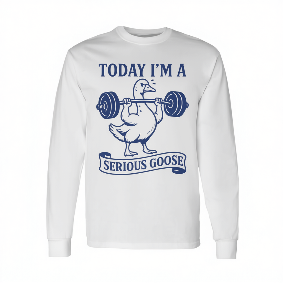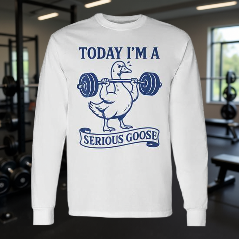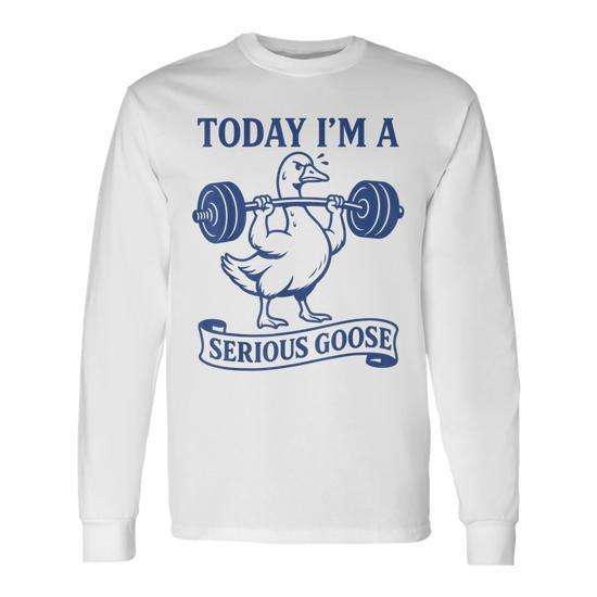 T-shirt à manches longues unisexe à col rond Today I'm A Serious Goose pour la gym, le fitness et la musculation