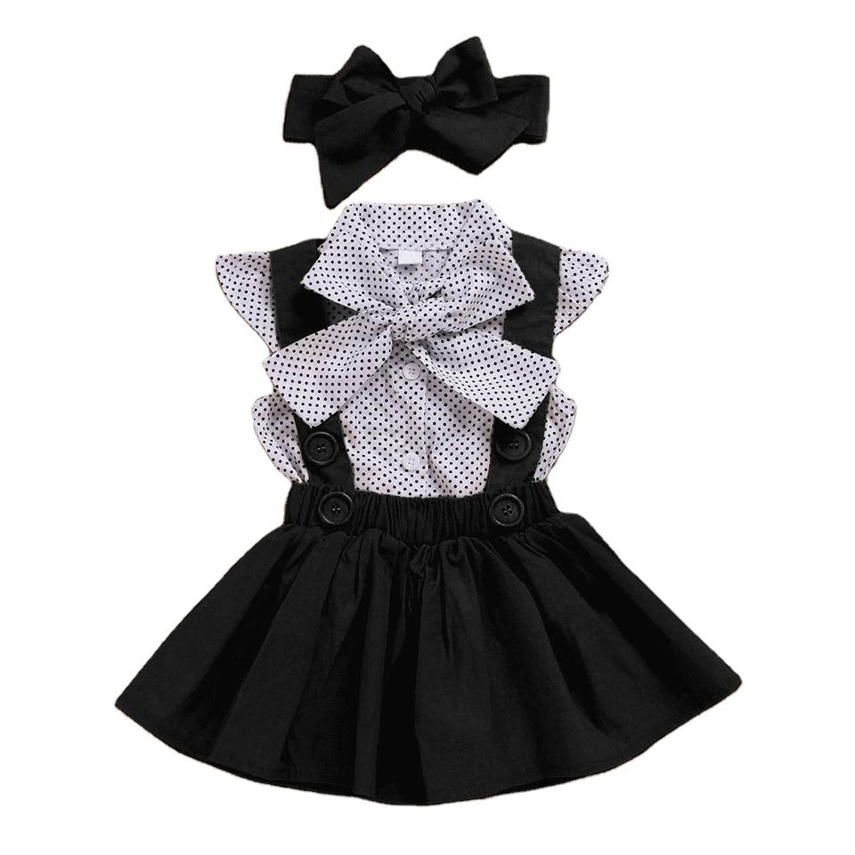 Vêtements pour bébé fille, chemise à manches courtes à volants, jupe avec nœud papillon, bandeaux, ensemble de 3 pièces, uniforme scolaire H19030