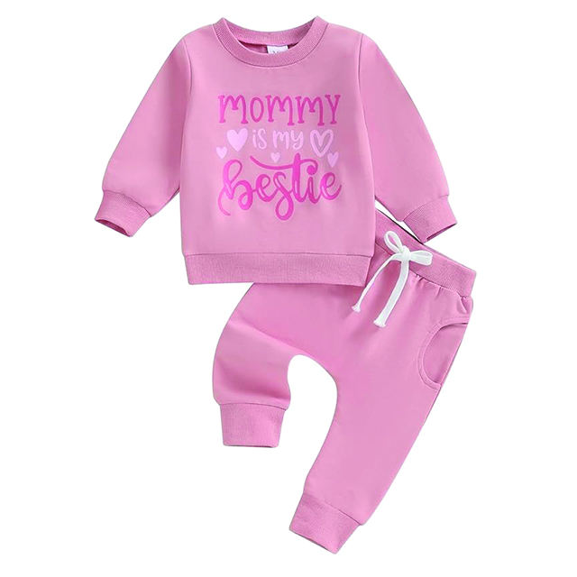 Toddler Baby Girls Spring Fall Outfit Letter&Heart Print Long Sleeve Sweatshirt Elastic Waist Trousers 2 Pieces Tracksuit Set