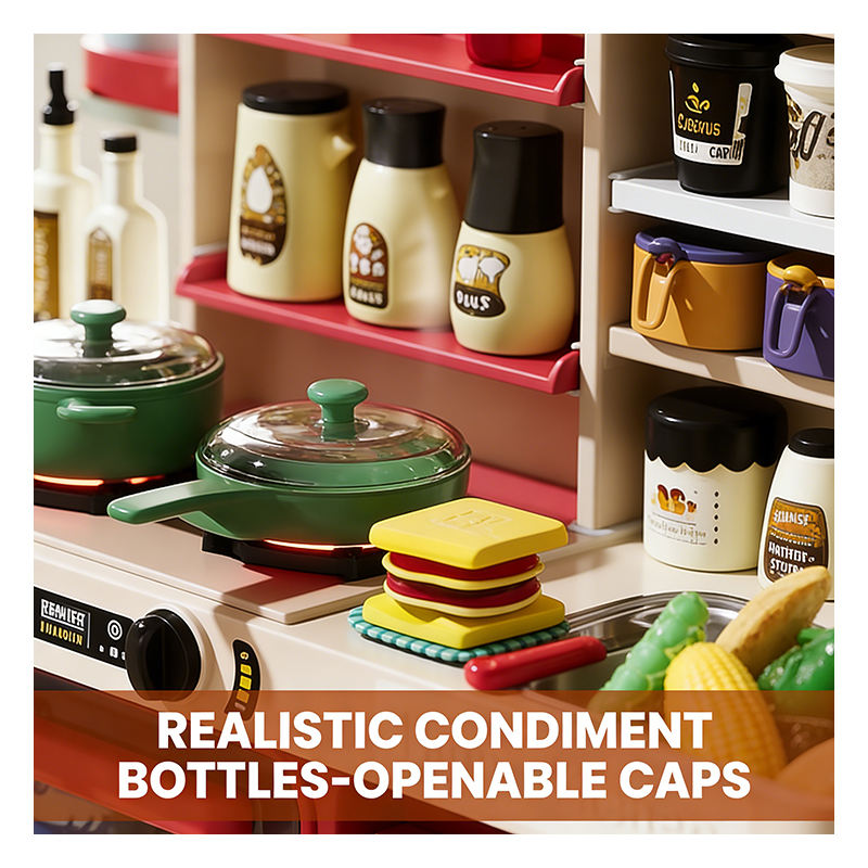 Ensemble de jouets de cuisine pour tout-petits : Table de chef, brûleur, robinet, armoire et accessoires pour l'apprentissage, le développement, le jeu d'imitation et le plaisir à la maison