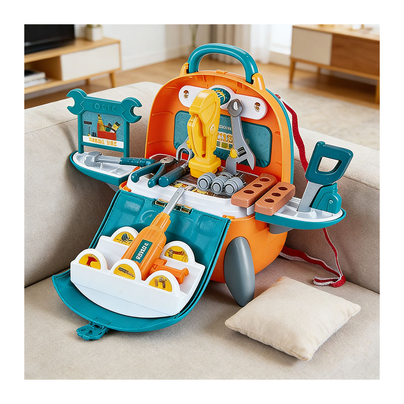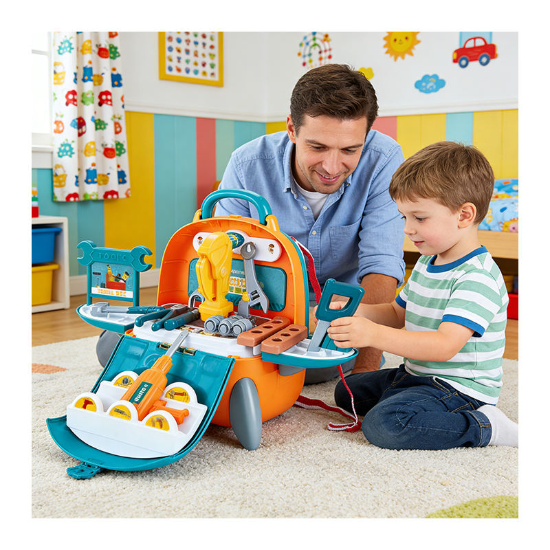 Coffret d'outils de construction en plastique pour tout-petits : Jouet d'ingénieur, perceuse, atelier, boîte à outils, jeu d'imitation, développement de l'apprentissage