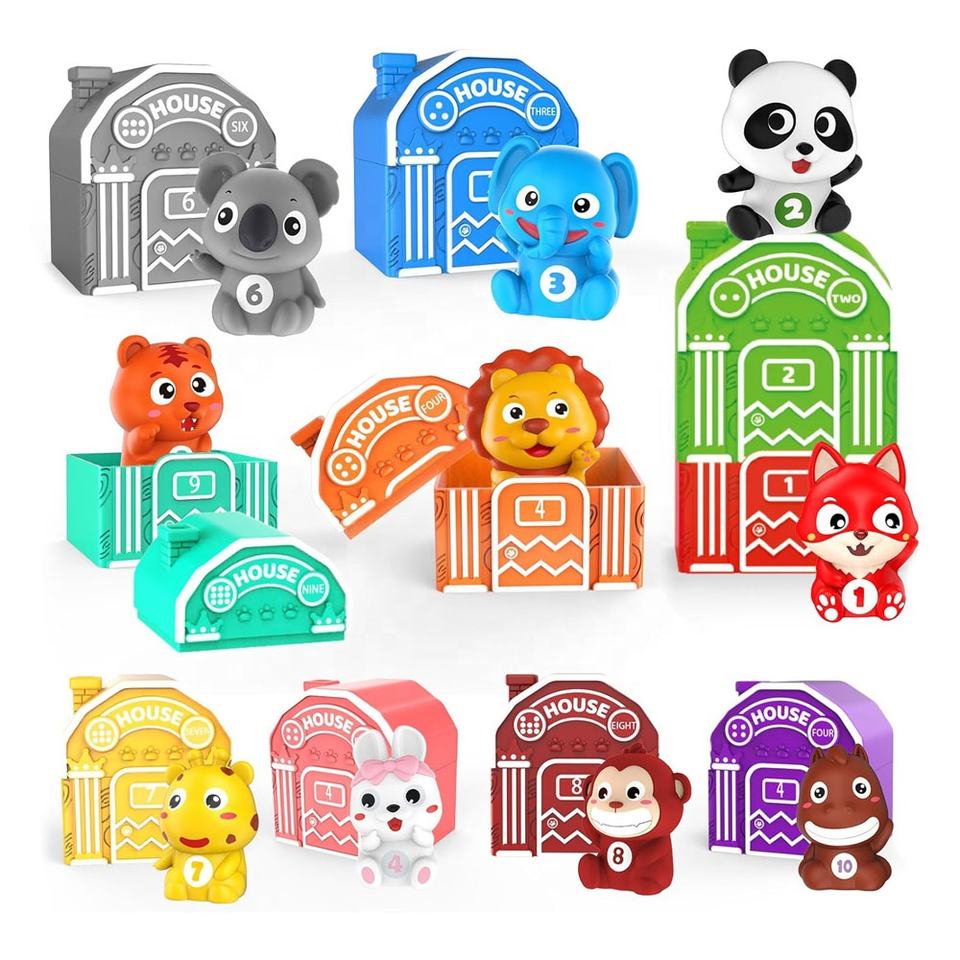 Accessories: color sorting matching toy:10pcs soft animal+10pcs house toy