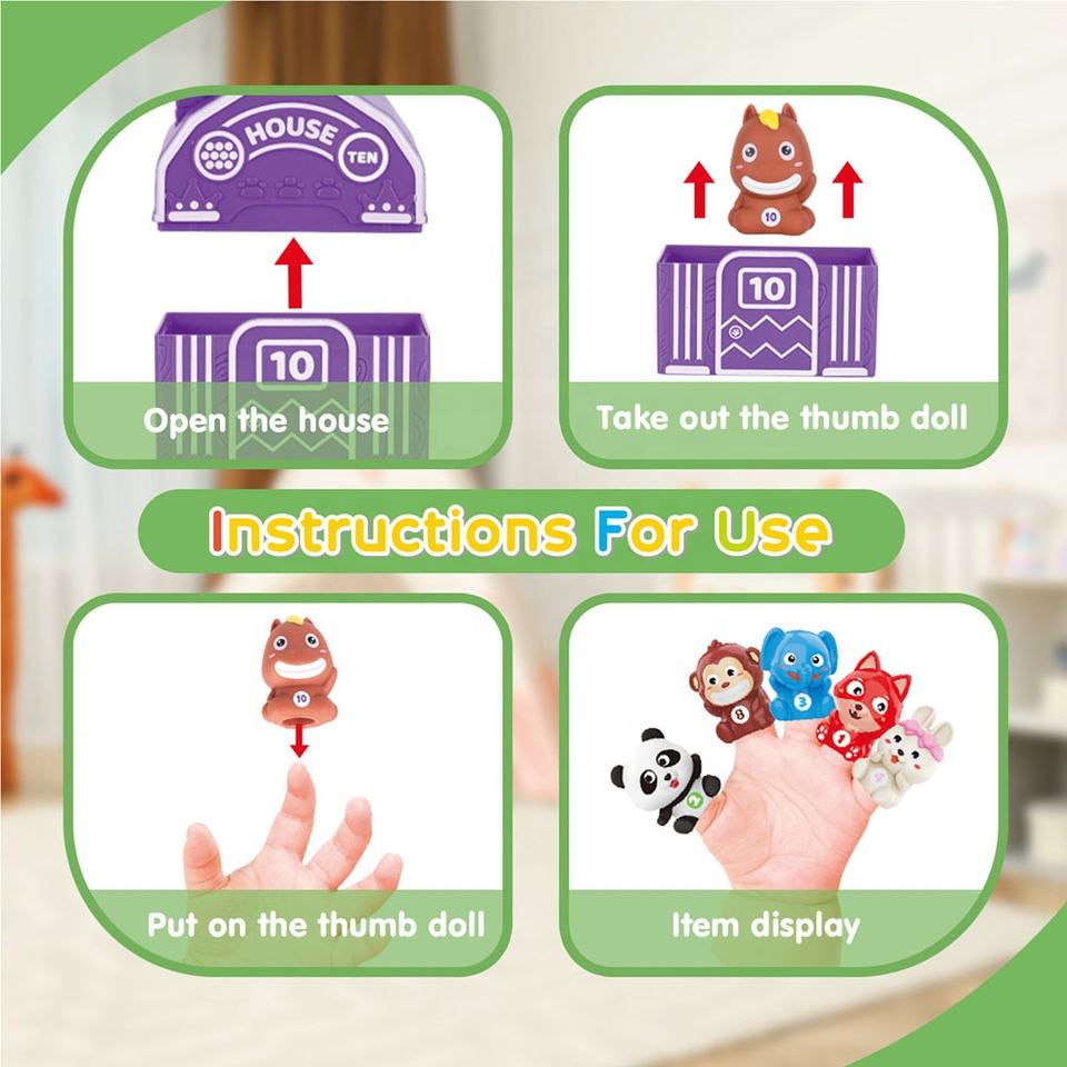 Feature: finger puppets matching toy:Made of safe plastic material with smooth edges, no burrs