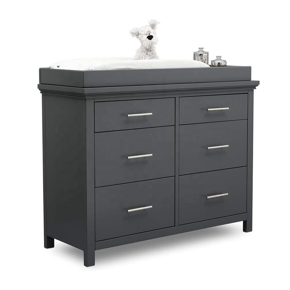Commode à 6 tiroirs pour chambre d'enfant en bas âge armoire de rangement commode et table à langer en bois pour bébé