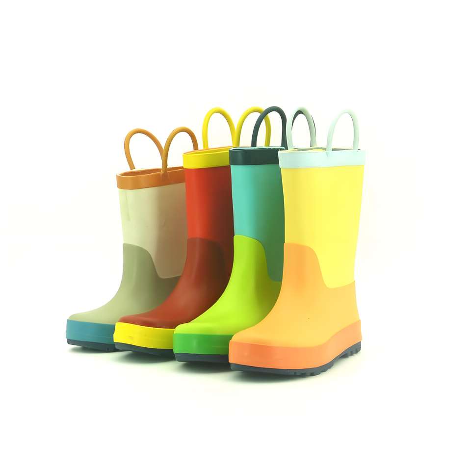 Bottes de pluie imperméables en caoutchouc massif pour tout-petits, bottes de pluie pour enfants, chaussures confortables avec poignée