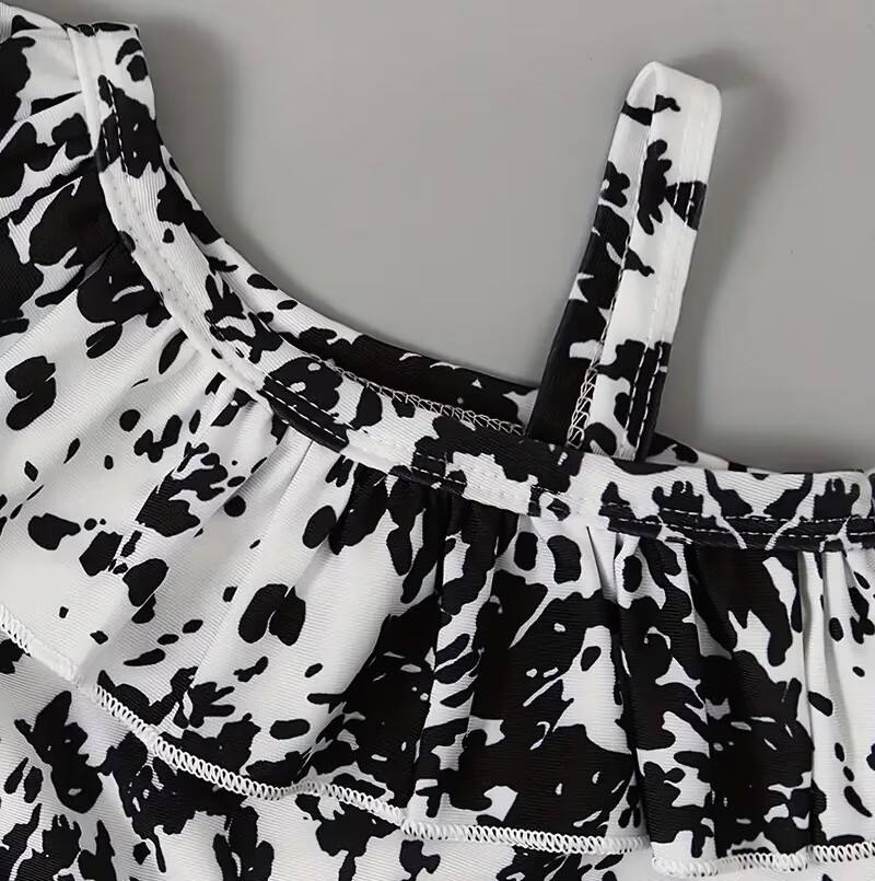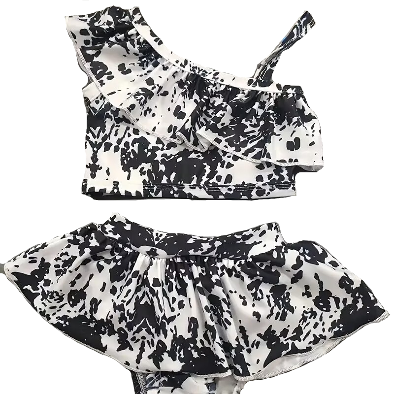 Maillot de bain motif encre couleur Clash pour enfant en bas âge haut à une épaule et short à jupe ensemble maillot de bain extensible maillot de bain bébé fille