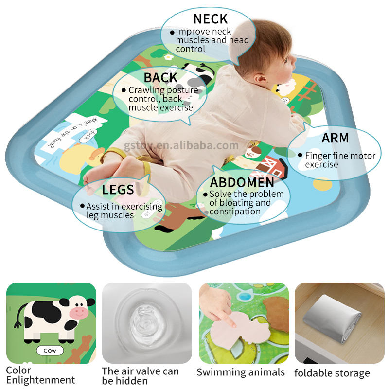 Jouets sensoriels en PVC pour tout-petits, motifs amusants sur le thème de la ferme, tapis gonflable pour le temps passé sur le ventre, tapis de jeu aquatique de qualité supérieure pour bébés de 3 à 24 mois