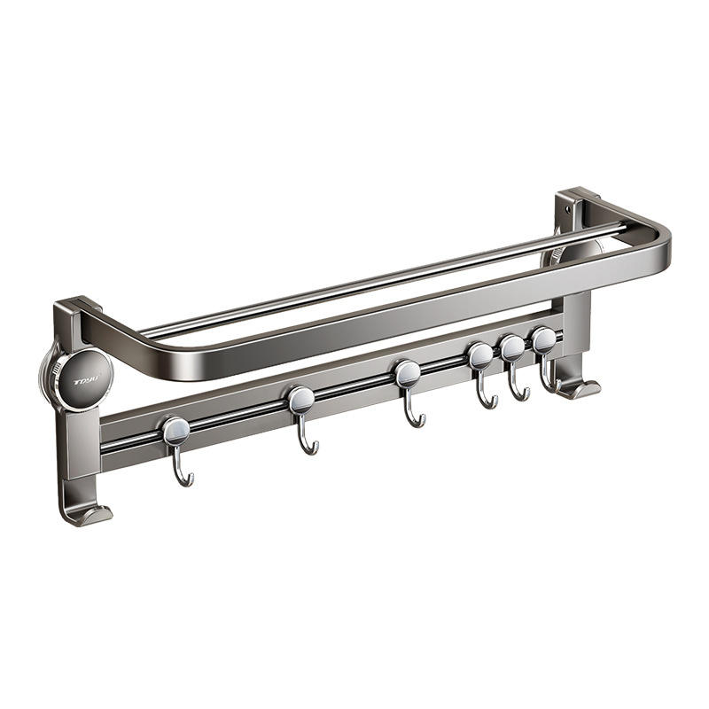 Porte-serviettes mural en acier inoxydable Todri à double barre avec crochets, design minimaliste