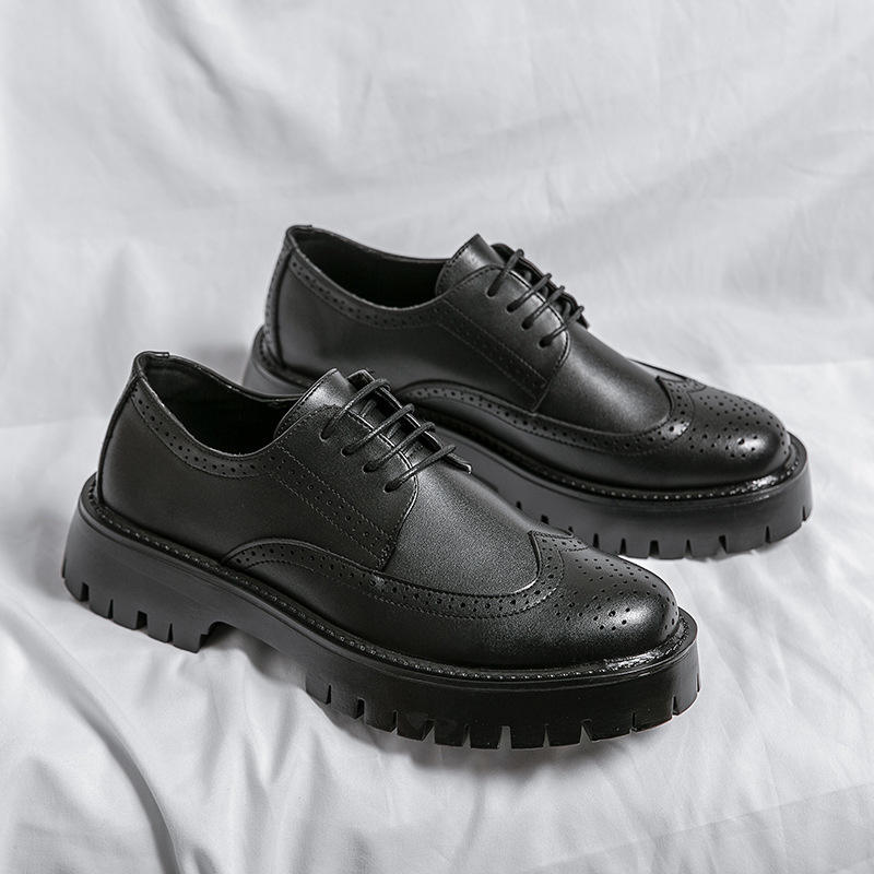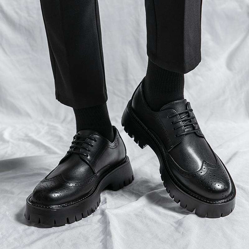 Chaussures en cuir verni pour homme, style britannique, décontractées, à lacets, à semelle épaisse, bottines basses, à talon bas, noires, patchwork, style workwear, automne