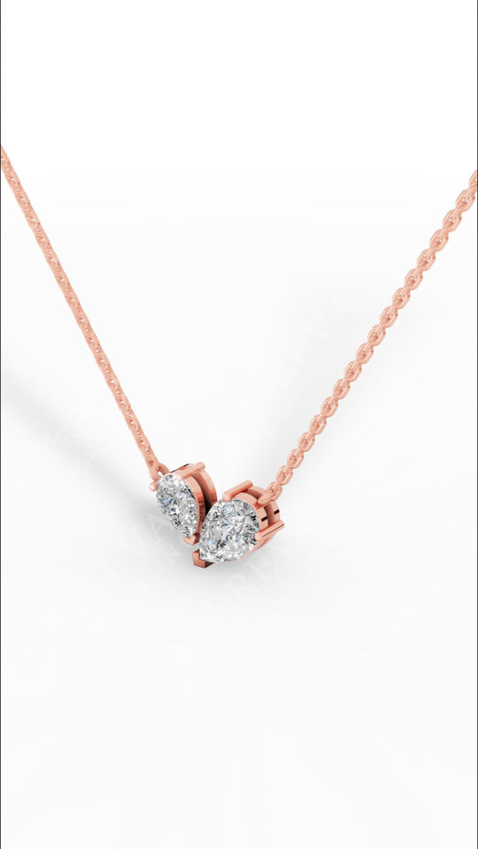 Collier Toi et Moi avec diamant de laboratoire taille poire en or 18 carats – Élégant double pierre, symbole d'amour radieux