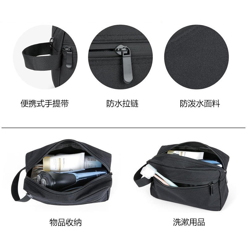 Trousse de toilette en nylon imperméable rectangulaire pour homme avec poignée de transport et fermeture éclair