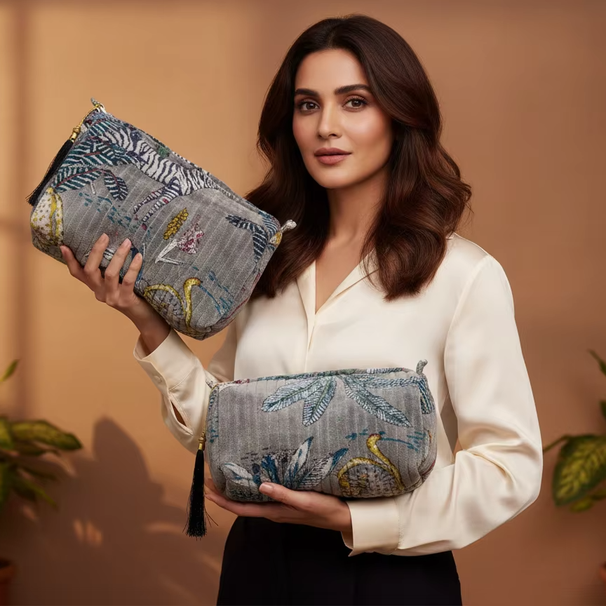 Product name:Women 3 Pc Set Velvet Toiletry Pouch Set