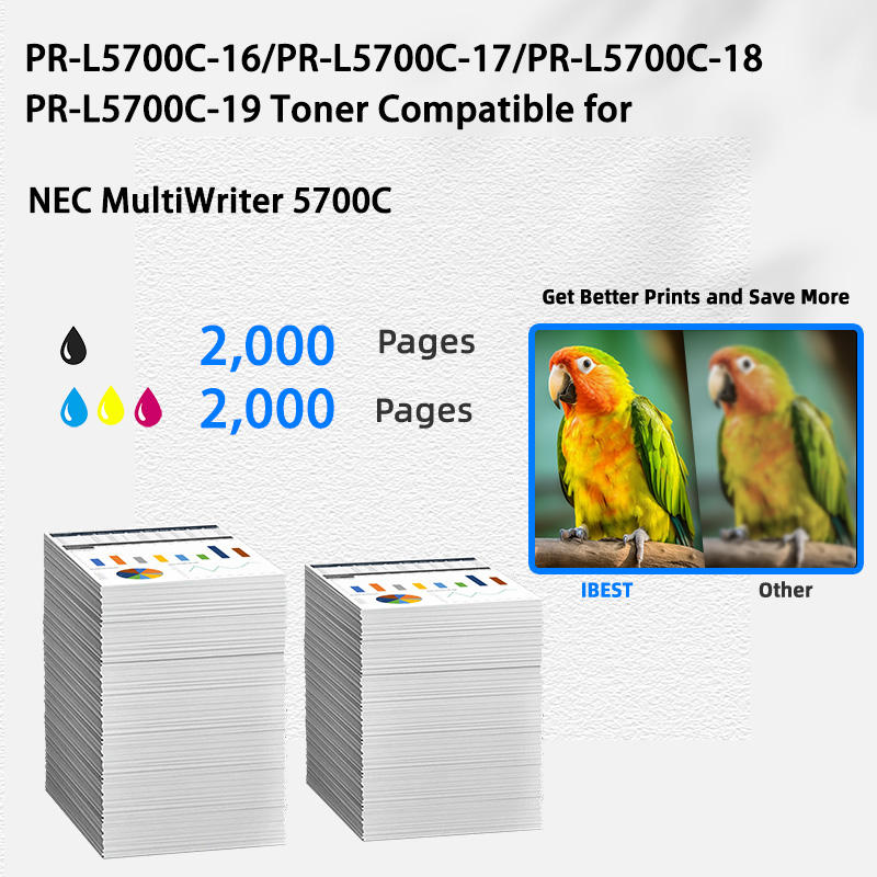 Cartouche de Toner Couleur Compatible pour NEC MultiWriter 5700C PR-L5700C-17 PR-L5700C-16 Compatible PR-L5700C-18 PR-L5700C-19